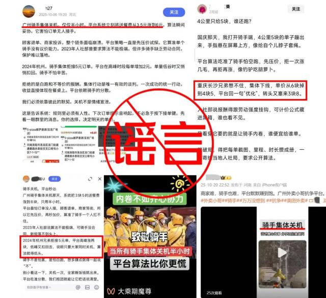 事实上大资本配资,重庆、广州、杭州均未发生骑手罢工或集体关机事件,相关内容均为谣言。