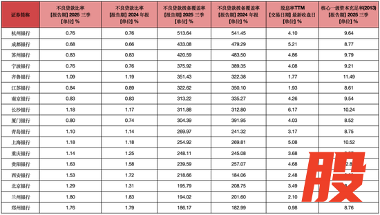 17家上市城商行2025年前三季报数据,来源:Wind